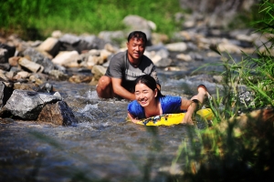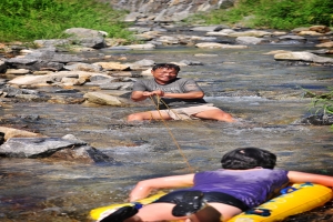 | 계곡물에 쓸려내려가고 다시 줄을 잡아 당겨 다시 내려가고~~ |