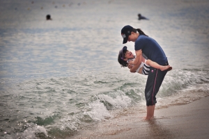 | 물을 무서워 하는 민서를 엄마가 놀리고 있네요. |