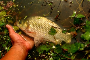| 필자도 아침입질에 월척급을 한 수 걸어 내었습니다. |