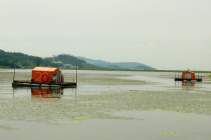 | 중하류권 수초대에 배치되어 있는 좌대들입니다. |