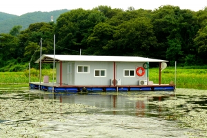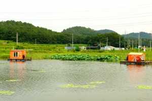 최상류권 연밭과 부들밭에 배치되어 있는 좌대입니다. |