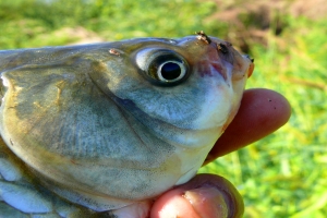 잘생긴 천수만 붕어의 얼굴입니다. |