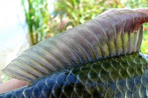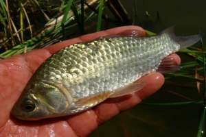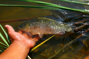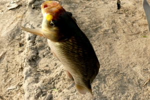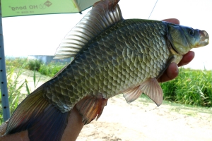 | 낮낚시에 나온 둠벙 9치급 붕어의 모습 |