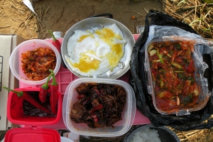 | 밤을 지세운 45님... 오리털 점퍼를 입었어요. |