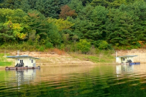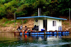 | 상류에서 바라 본 우측편에 위치한 수상좌대 전경 |