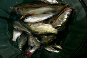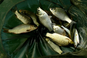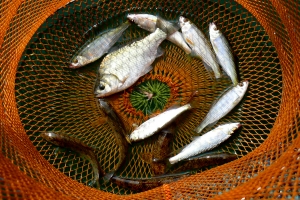 상류권에서 낚시를 한 조사의 살림망 |