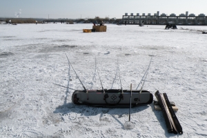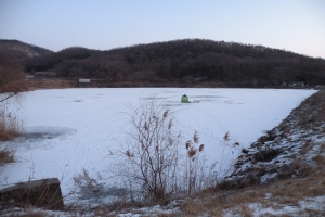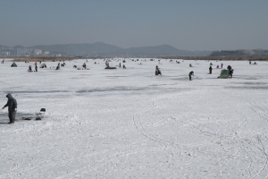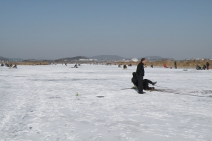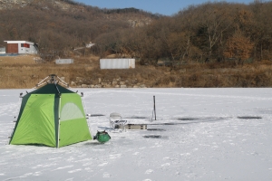 | 얼음 낚시할 때도 텐트를 사용하면 조금 더 따끗하게 낚시를 할 수 있습니다. |