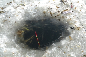 5분이 되기 전에 얼음 구멍에 다시 얼음이 얼어요. |