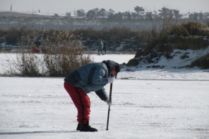 | 조사님들 마다 입질이 없으니 새로운 구멍을 뚫고 있네요. |