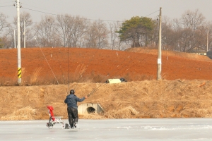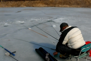 | 얼음두께는 거의 30센티 정도여서 구멍 뚫기가 너무 힘들어요. |