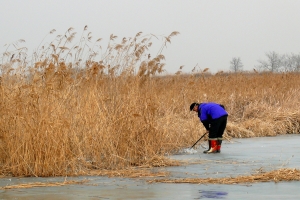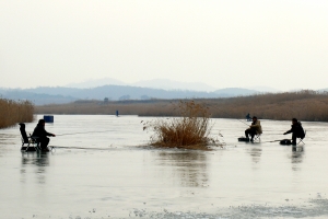 | 갈대수초를 공략한 조사의 살림망 |