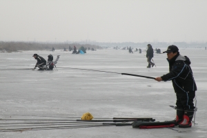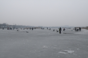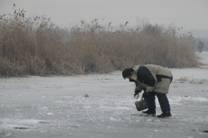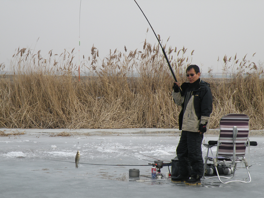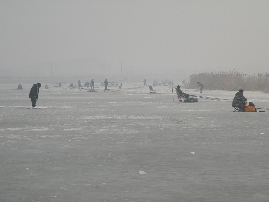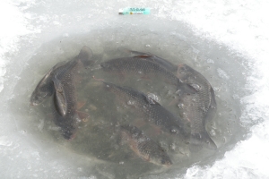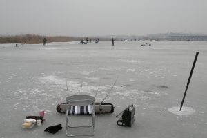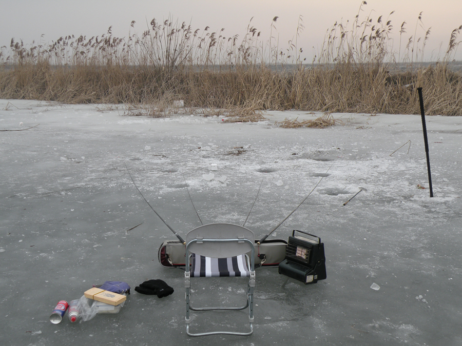 이렇게 구멍을 뚫고 붕어를 기다려 봅니다. |