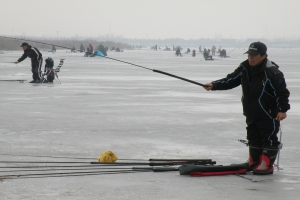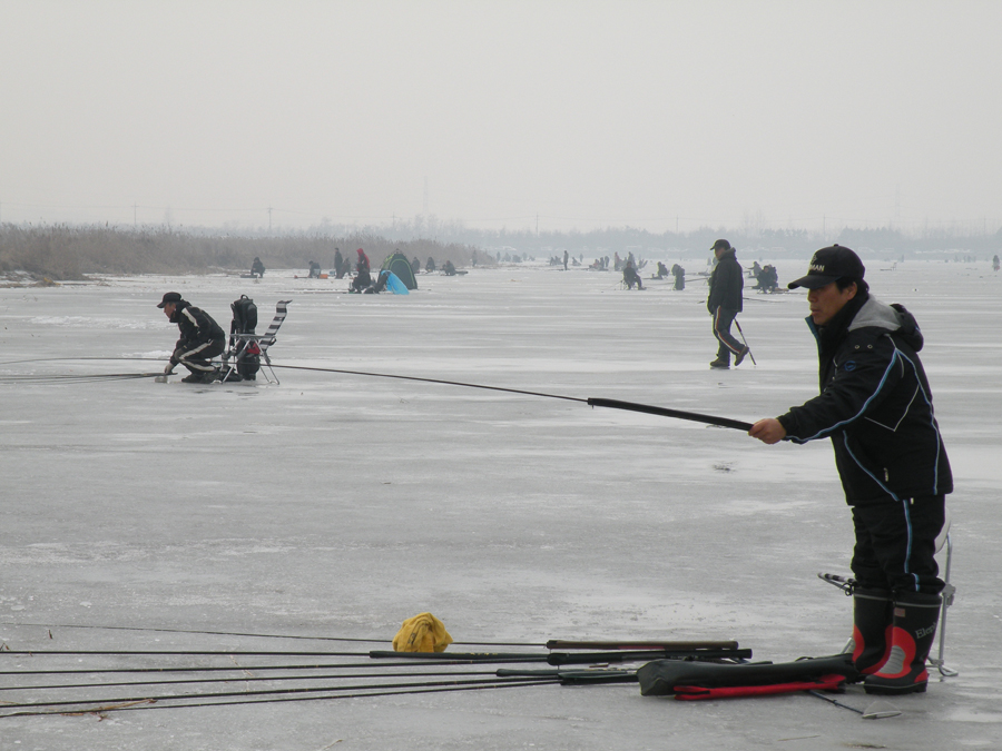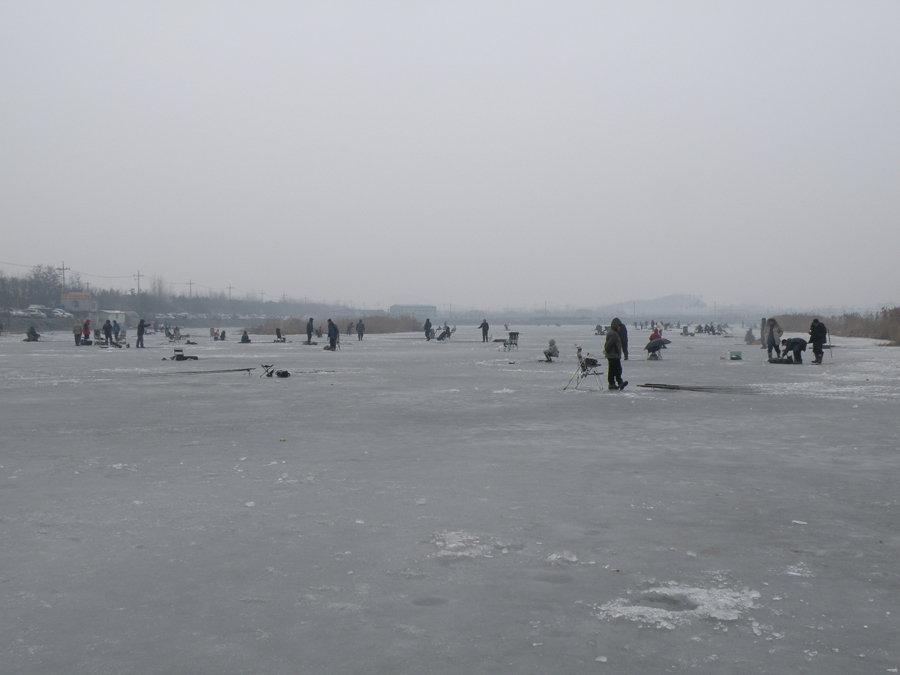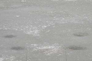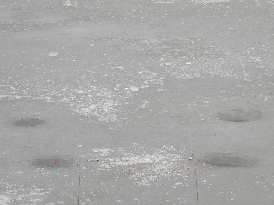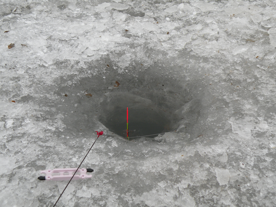 | 이렇게 구멍을 뚫고 붕어를 기다려 봅니다. |