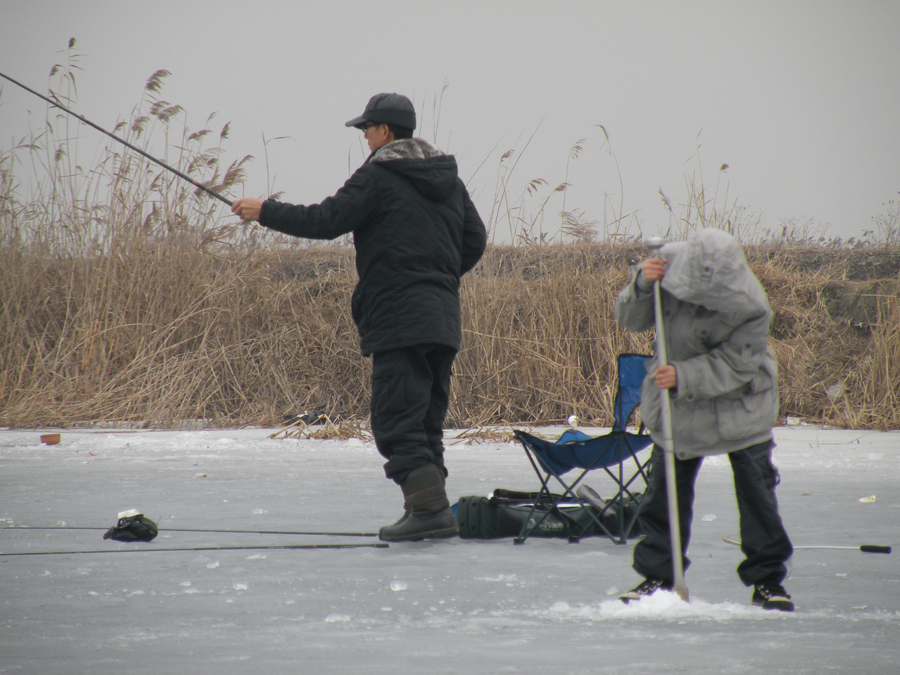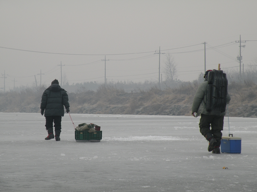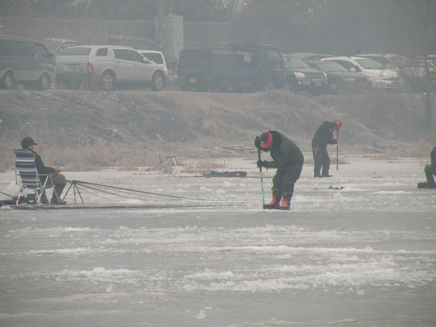 부자가 함께한 곳도 입질이 없나봅니다 (아들이 열심히 구멍을 뚫네요) |