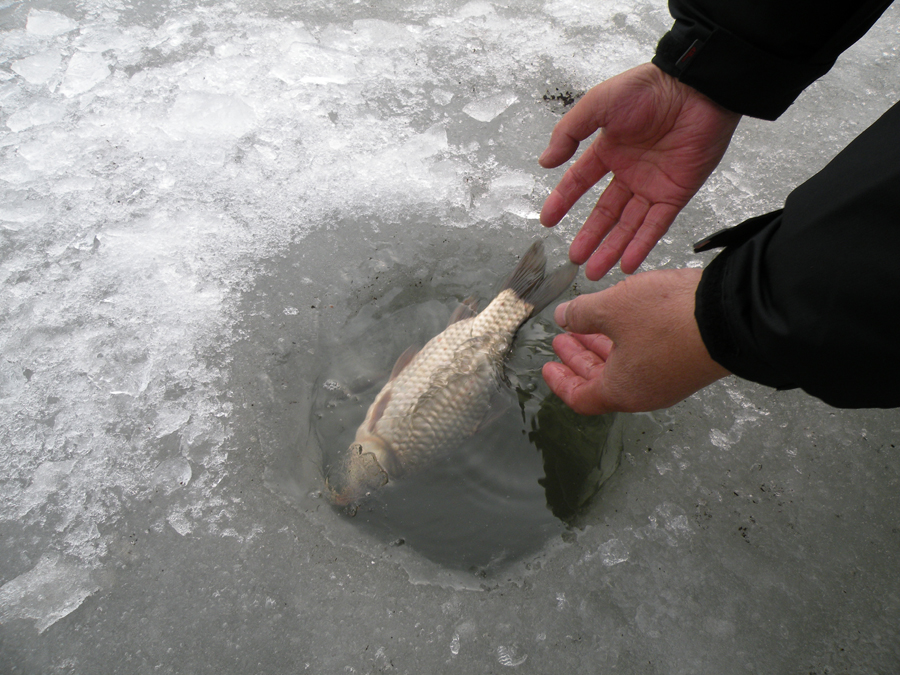 | 가양동에서 오신 어르신께서는 동행하신 여사님이 낚은 월척급과 7치급 붕어를 방생하셨습니다. |