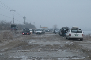 | 아침 7시 40분시경인데 자동차가 많아요. |