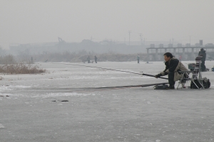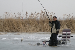 | 6치급 붕어를 1수 낚으시고 열심히 고패질 중이십니다. |