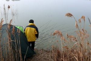 동틀 무렵에 찌가 보이지 않을 정도로 안개가 심합니다. |