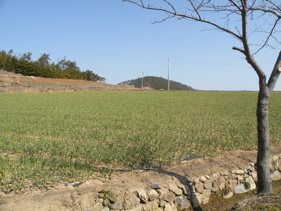 농부의 뒤로 하의도의 봄이 먼저왔네요. |