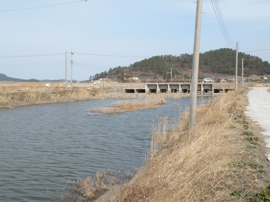 | 장산도 수로 수문을 바라보고... |