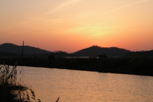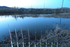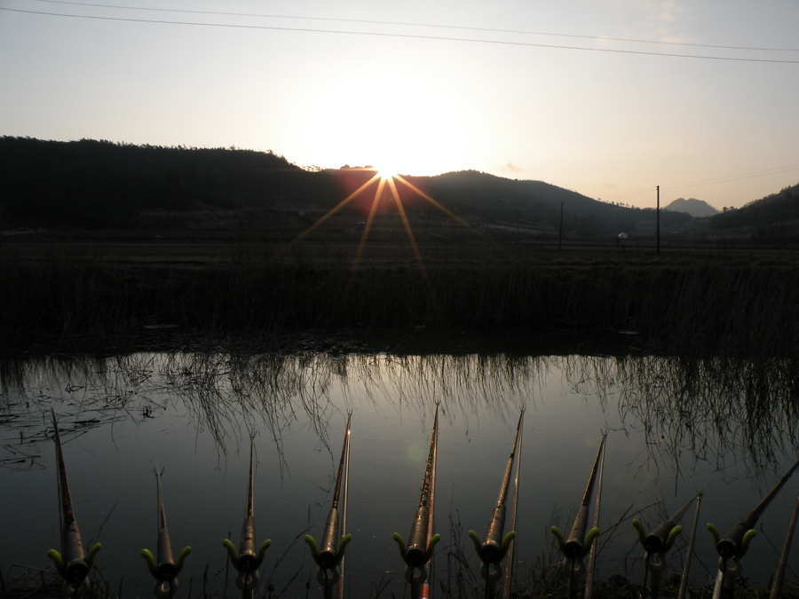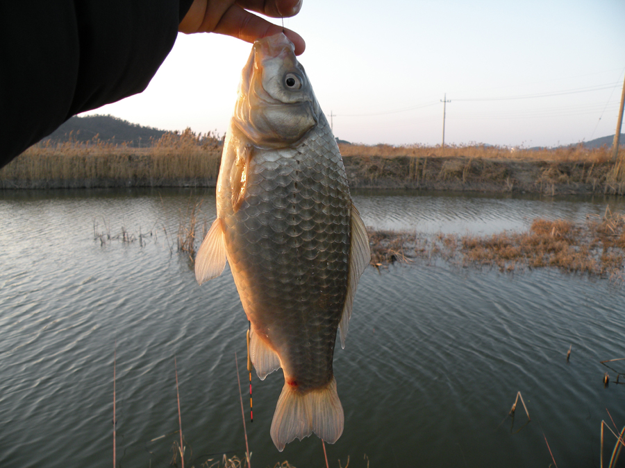 | 필자가 해지기 전에 8치급 붕어를 낚습니다. |