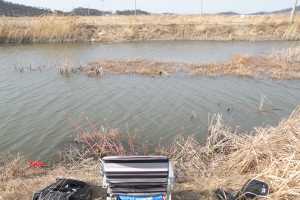 | 필자는 수문옆 수초 언저리에 채비를 했어요. |