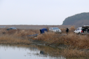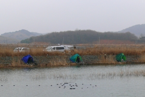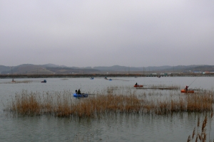 | 상류 갈대수초로 보트낚시꾼들이 모여 들었습니다. |