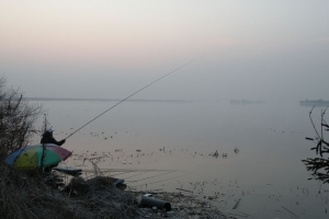 밤낚시를 하신 조사님과 평택호 전경 |