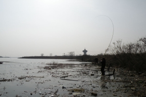 | 챔질 성공하여 낚싯대가 말발굽처럼 휘어집니다. |