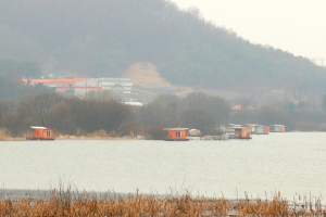 상류권 수몰나무 포인트에 위치한 구형 좌대들 모습 |