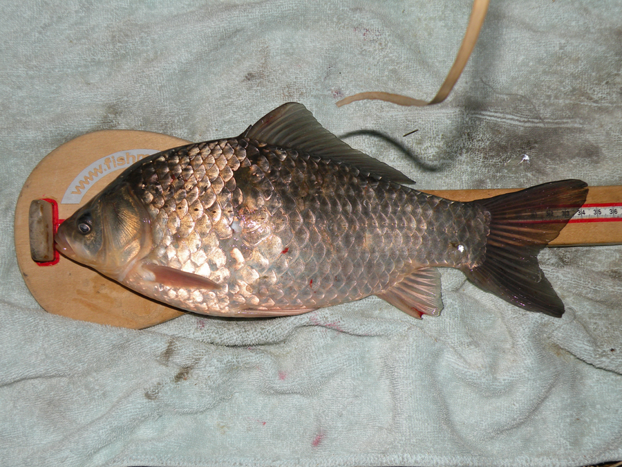 필자가 낚은 34.6cm의 월척급 붕어 |