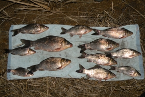 | 필자가 낚은 붕어만 수건에 올려놓고... |