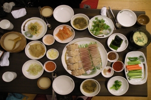 | 월척급을 낚은 기념으로 삼합에 막걸리 한잔했습니다.^^ |