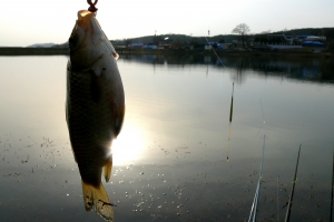 윤교수님이 걸어낸 체고 좋은 소류지 붕어입니다. |