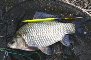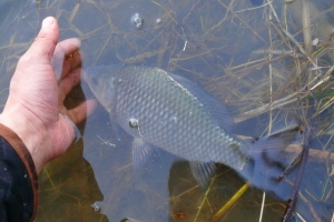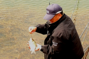 | 윤교수님이 걸어낸 체고 좋은 소류지 붕어입니다. |