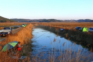 | 1번수로 상류권에 자리잡은 토사모회원들 모습 |