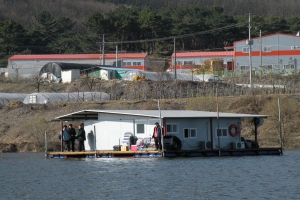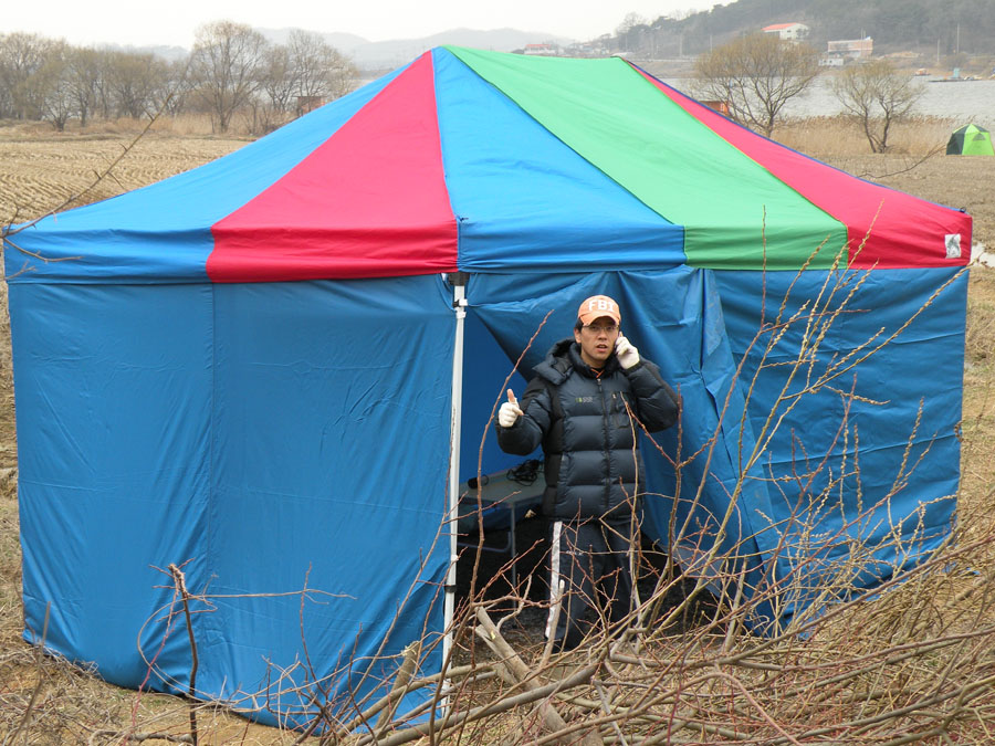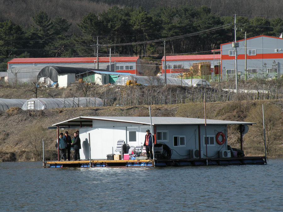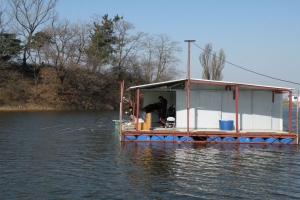 바람막이를 좌대에 설치해서 낚시가 편해졌어요. |