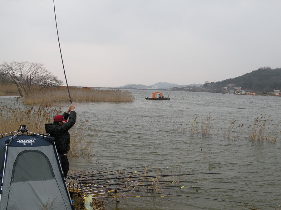 | 대표붕어님도 챔질해 낚싯대가 휩니다. |