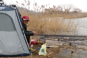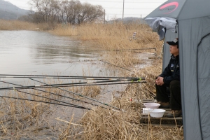 | 바람막이를 좌대에 설치해서 낚시가 편해졌어요. |