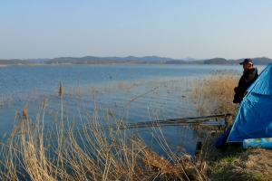 | 난감한 모습으로 낚시를 하고 있는 윤교수님입니다. |