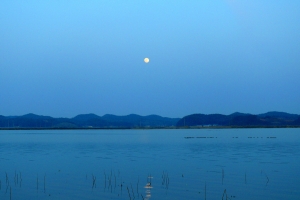 해가 졌는데 보름달이 둥그렇게 떠 올랐습니다. |
