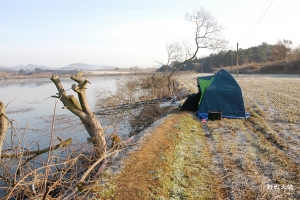 기온차이가 크게 나타나는 시기로 아침엔 낚싯대가 얼어 버렸네요. |