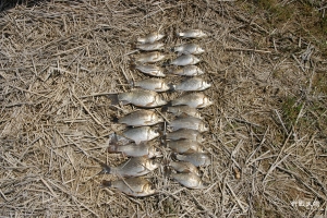 | 참붕어들의 산란기에 따라... 알이 가득찬 암컷의 채집량이 많습니다.^^ |