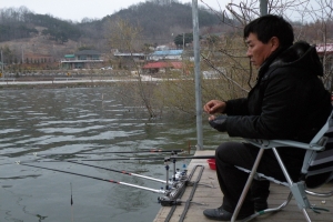 | 먼저 낚시 중인 옆좌대 조사님 |