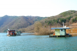 | 고탄낚시터 중하류권에 위치한 수상좌대 전경 |