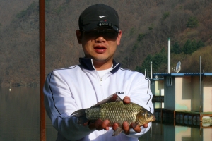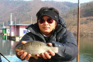 | 멋진 붕어를 들고서 기념촬영 했습니다. |