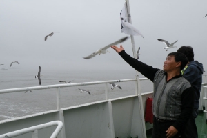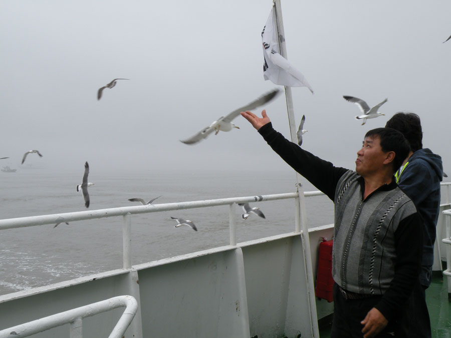 철호님이 동심에 빠져 갈매기에게 새우깡을 줍니다. |