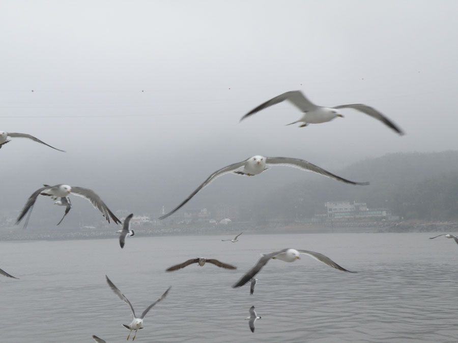 | 철호님이 동심에 빠져 갈매기에게 새우깡을 줍니다. |