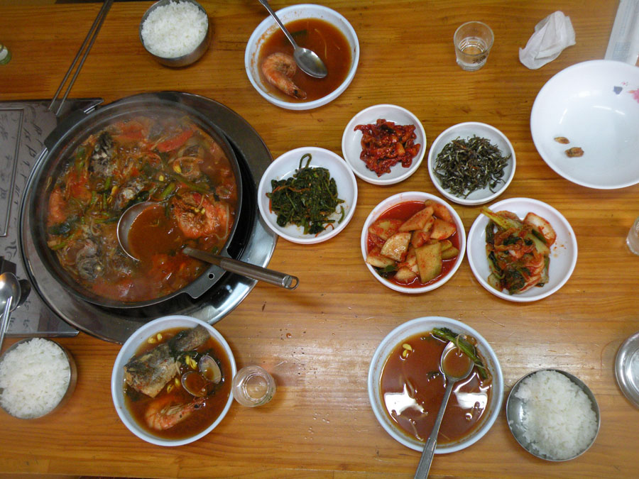 | 삼산면에 있는 식당에서 매운탕을 먹어요. |