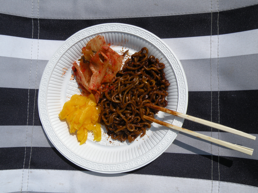 | 새벽에 라면을 간단히 먹어요. |